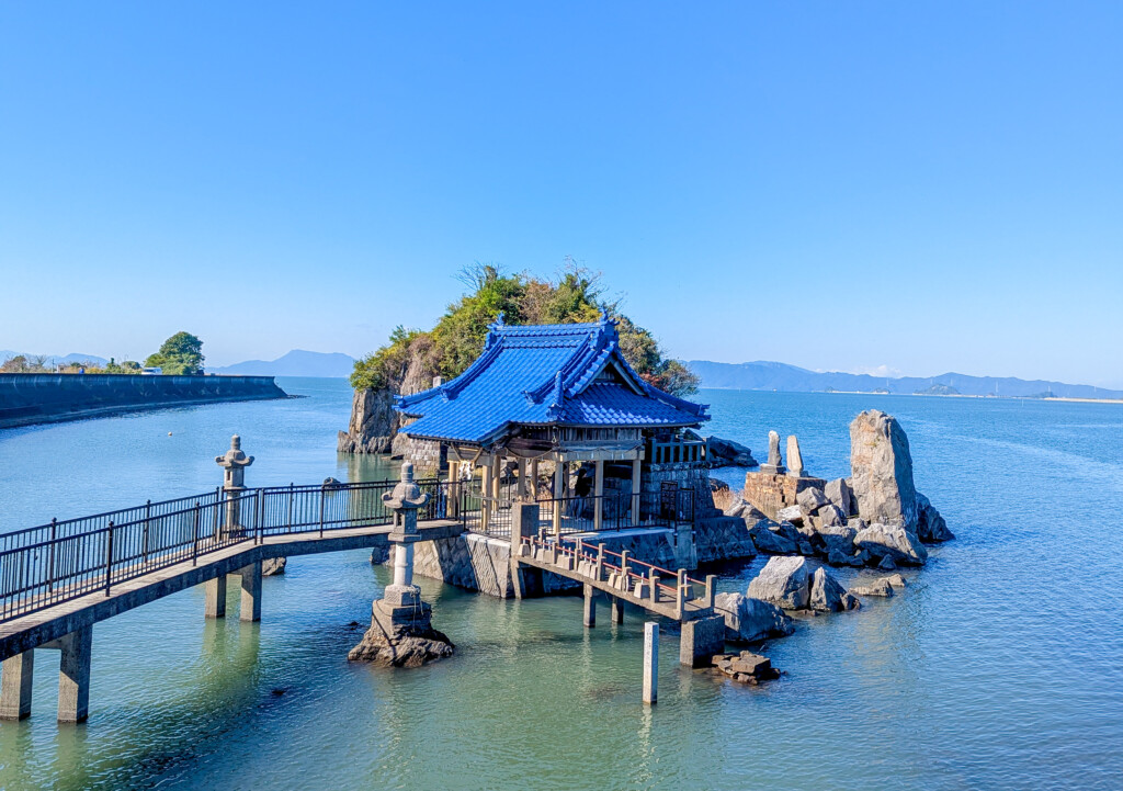 龍神社は満潮時にはまるで海に浮いているように見える神秘的な景観。