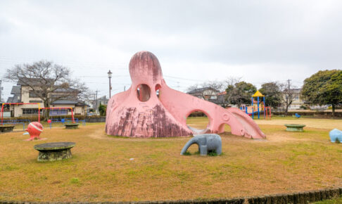 小規模ながら、ユニークな遊具や動物モチーフのオブジェがあり、「タコ公園」という愛称で地域でも親しまれています。